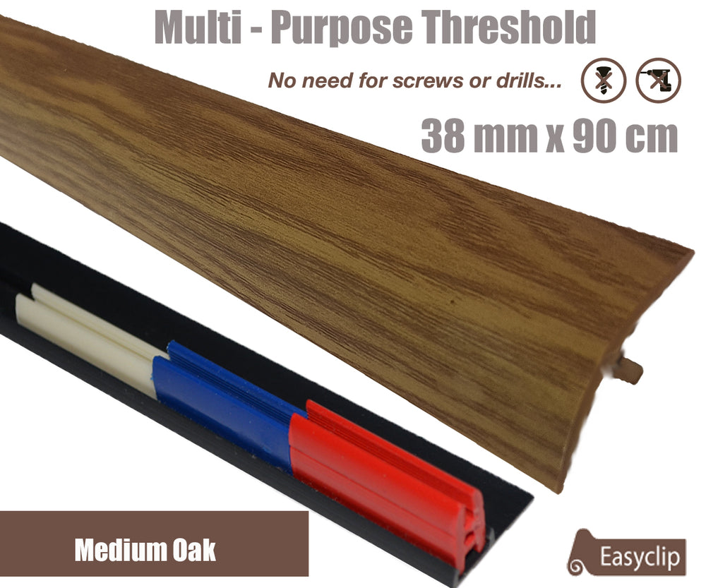 Easyclip The Most Versatile professional Multi-Floor, Multi Purpose Thresholds suits all floor types, our 40mm & 50mm door threshold range is adjustable in height & pivots to suit uneven floors & accommodates different flooring heights. the thresholds provides the perfect finish to any floor types, supplied with an adhesive strip as no screws or drilling are required for fitting, Supplied with single or 3 Clip System (Colour Dependent). Colour can vary slightly from batch to batch on certain colours. Image colour can vary on Device used to view them.