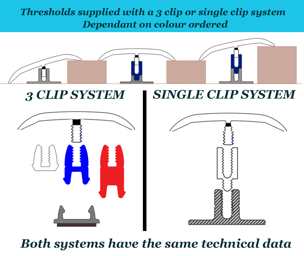 Easyclip The Most Versatile professional Multi-Floor, Multi Purpose Thresholds suits all floor types, our 40mm & 50mm door threshold range is adjustable in height & pivots to suit uneven floors & accommodates different flooring heights. the thresholds provides the perfect finish to any floor types, supplied with an adhesive strip as no screws or drilling are required for fitting, Supplied with single or 3 Clip System (Colour Dependent). Colour can vary slightly from batch to batch on certain colours. Image colour can vary on Device used to view them.